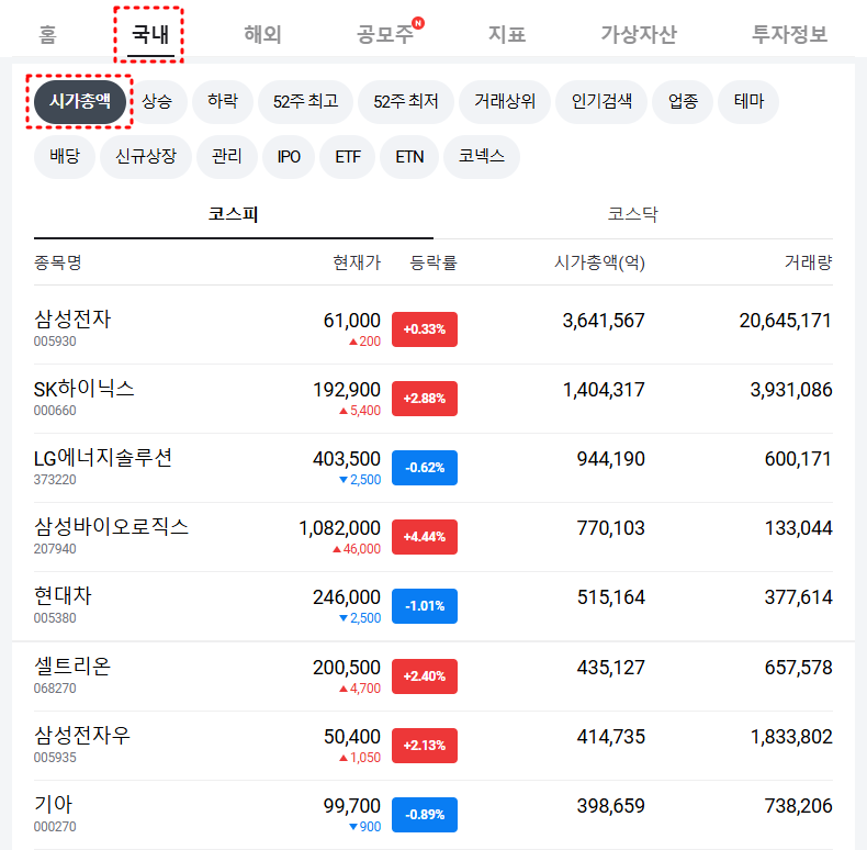 국내 시가총액 상위 기업