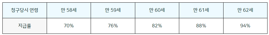 예를 들어, 1961~64년생의 경우 원래 노령연금을 63세에 받을 수 있는데, 조기노령연금은 그보다 5년 앞당긴 58세부터 신청 가능해요.