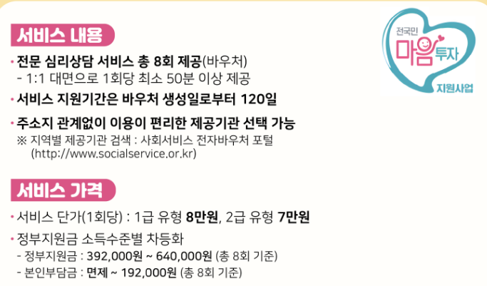 기본적으로 39만 원에서 최대 64만 원까지 지급되며, 8회에 걸쳐 상담 비용을 지원받게 됩니다.