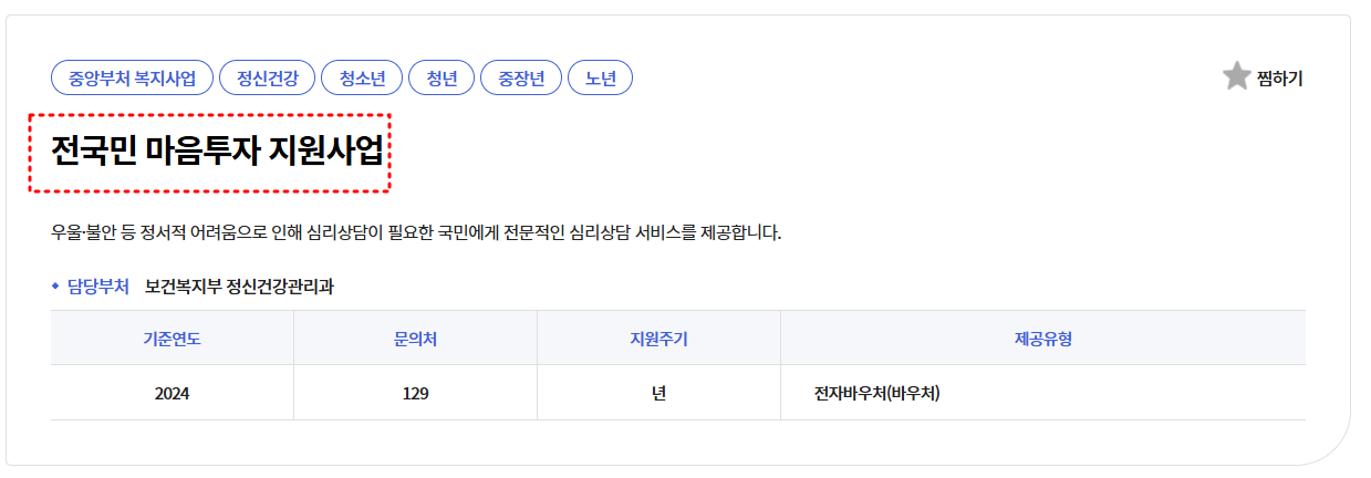 전국민 마음투자 지원사업의 첫 번째 자격 요건은 정신건강복지센터, 청소년 복지 상담센터, 혹은 대학교 상담센터에서 상담이 필요하다고 인정받는 것입니다.