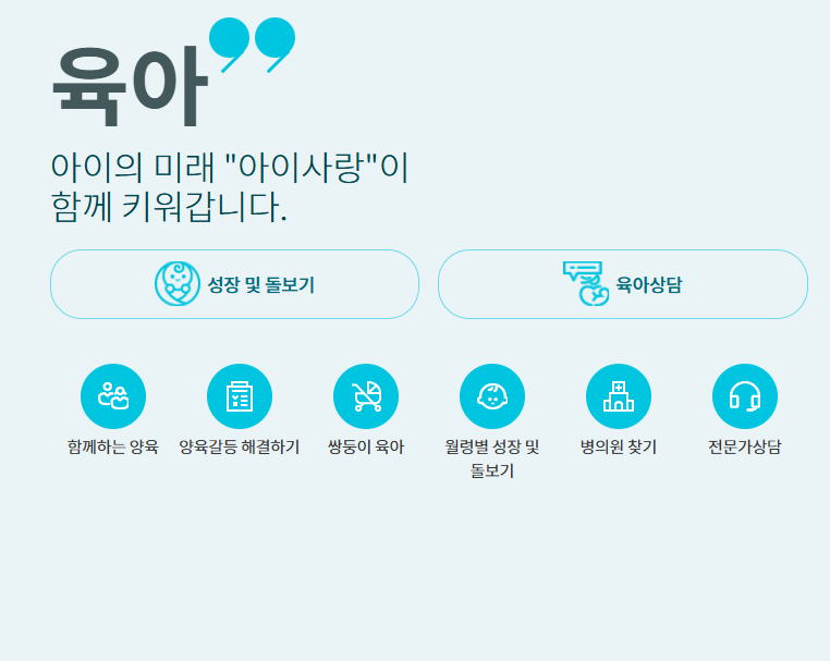 아이의 발달 문제, 보육 시설 관련 문제 등 다양한 육아 고민을 상담할 수 있어요.