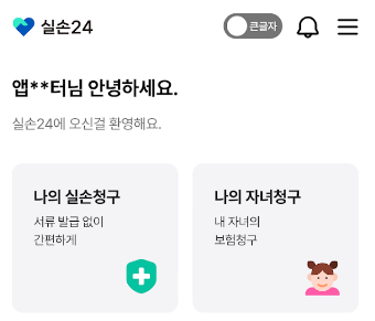 만약 미성년 자녀의 지급액을 청구해야 한다면 부모가 대신 청구할 수 있어요. 실손24 앱에서는 만 19세 미만 미성년자의 경우 친권자가 대리로 지급액을 청구할 수 있도록 되어 있답니다.