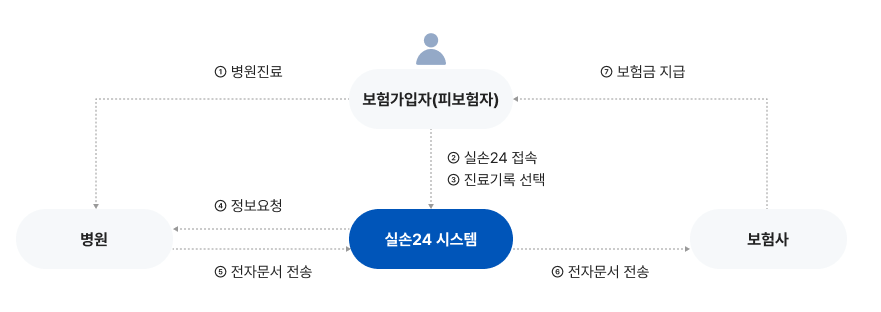 하지만 실손24 앱을 이용하면 이러한 서류 발급 과정 없이, 전산상으로 진료 내역을 확인하고 바로 지급액을 청구할 수 있어요.