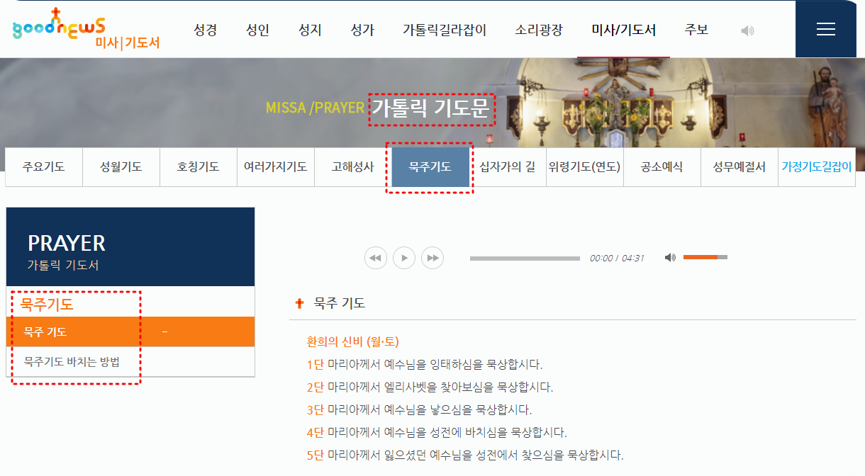 이를 위해 가톨릭굿뉴스 홈페이지를 접속해서 묵주기도 하는 법을 보고 따라할 수 있습니다.