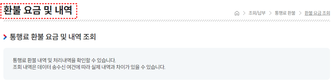 고속도로 통행료 홈페이지에서는 미납조회 및 납부 뿐만아니라, 증빙자료가 있다면 환불신청을 진행할 수도 있습니다.