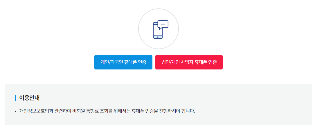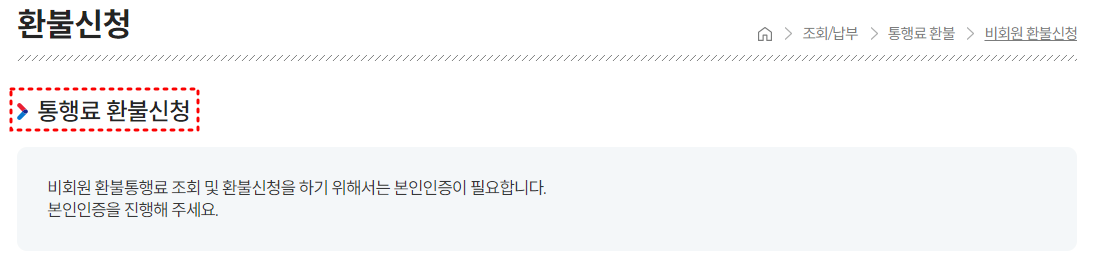 위와 같이 굳이 회원가입을 하지 않더라도, 개인 본인인증을 통해서 비회원 상태로 고속도로 통행료 환불신청을 진행할 수 있습니다.