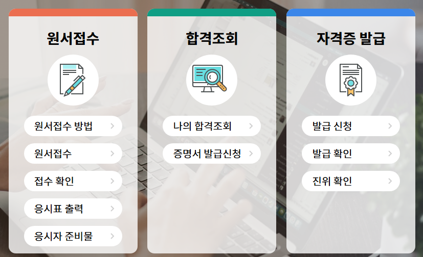 시험은 필기와 실기로 나뉘며, 평균 60점 이상이면 합격이에요.