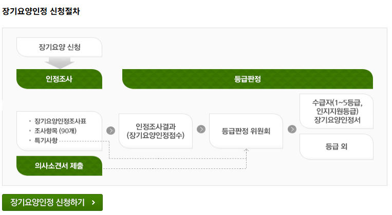 가족요양보호사 급여를 받기 위해서는 먼저 장기요양보장공단에 장기요양 인정 신청을 해야 해요.