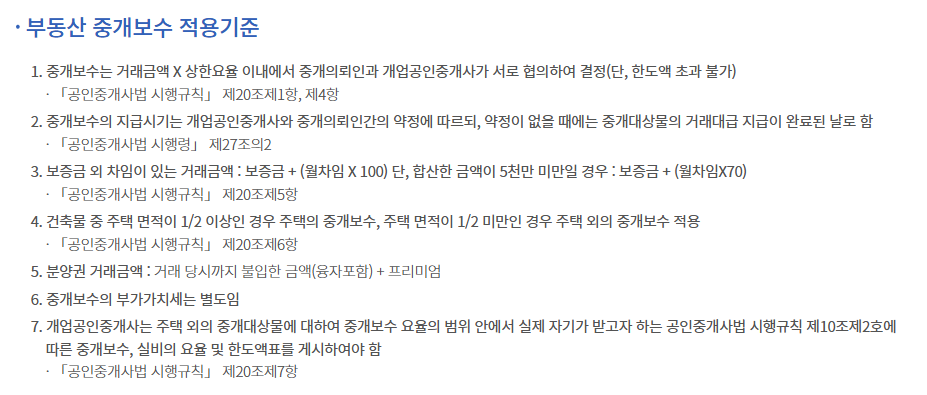 중개보수율 기준 확인