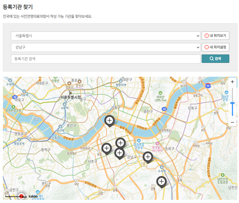사전의향서 등록기관 위치 확인 방법