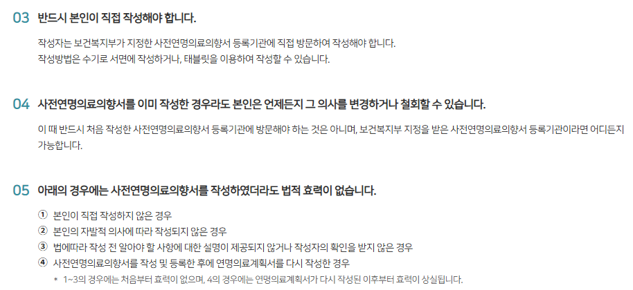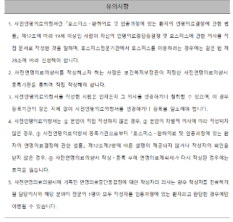 사전의향서 작성 시 유의사항
