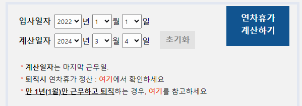 근로기준법에 따라서 연차일수를 계산하려면 어려운 점이 많으니, 연차일수 및 연차수당 계산기를 통해서 계산을 간단하게 해볼 수 있습니다.