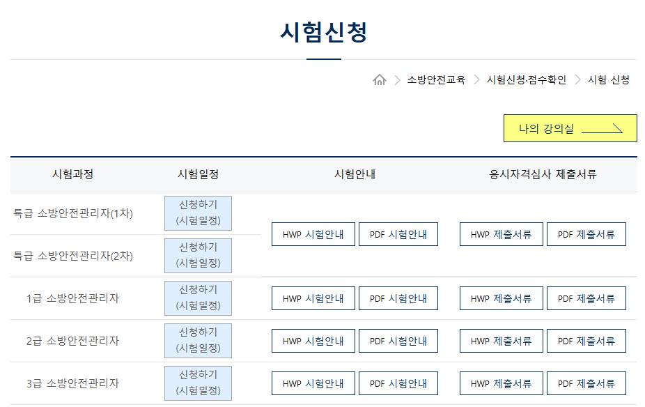 1. 한국소방안전원 홈페이지에서 원하는 강습교육 과정 확인
