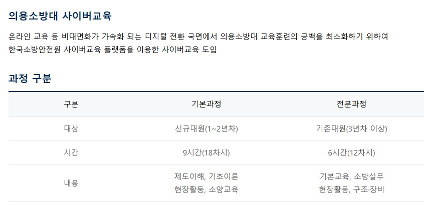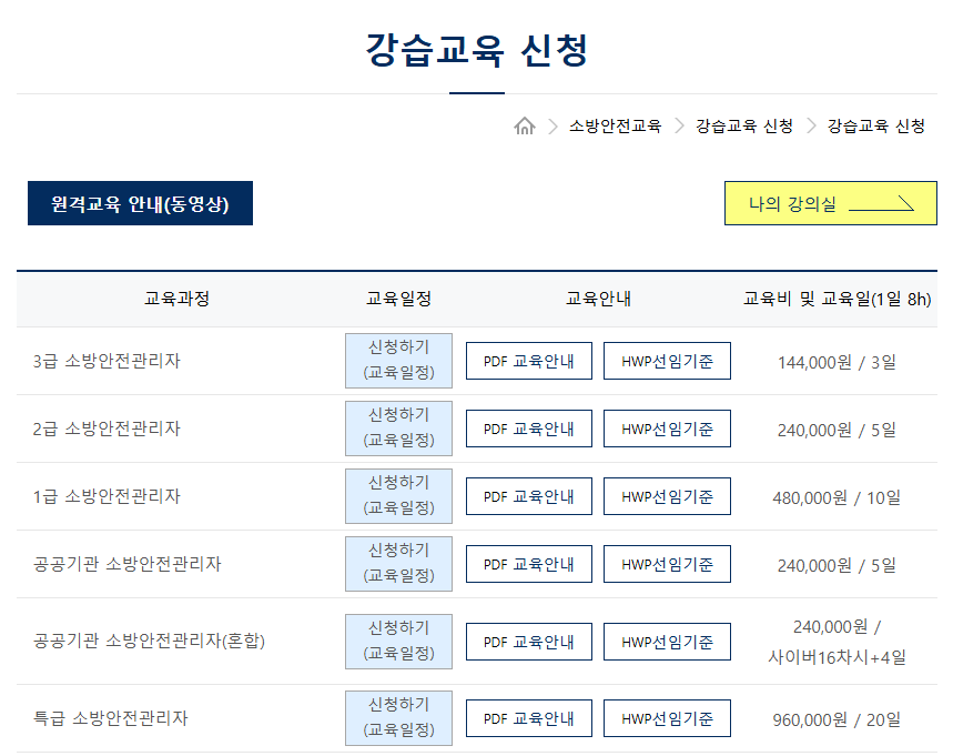 1. 한국소방안전원 홈페이지에서 원하는 강습교육 과정 확인