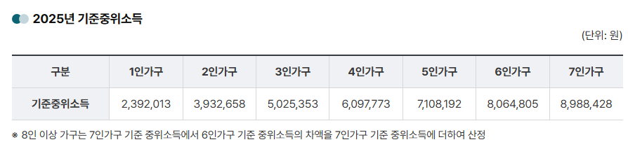 예를 들어 1인 가구는 약 1,196,000원, 4인 가구는 약 3,049,000원 이하일 때 자격이 주어집니다.
