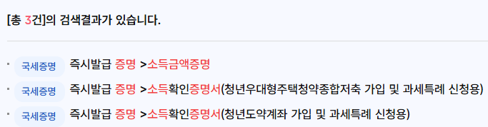 정부24에서는 검색창에 소득금액증명원을 입력하면 바로 신청 가능합니다.