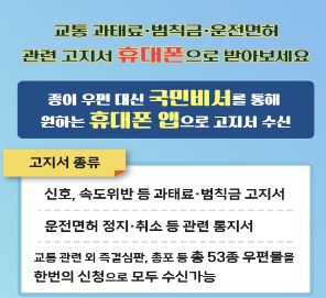 전자고지 시스템을 통해 교통범칙금 내역을 모바일로 바로 수신할 수 있습니다.