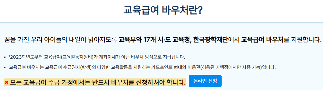 교육급여 바우처는 저소득층 학생에게 학습 활동을 지원하기 위해 마련된 국가 정책입니다.