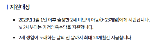 구체적으로는 출생 후 24개월 미만, 즉 0~23개월 아이가 해당됩니다.
