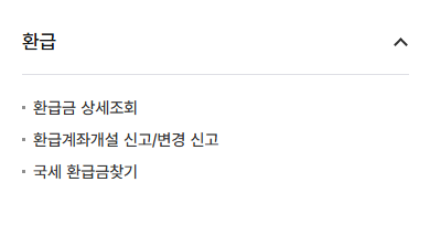 전체메뉴에서 ‘납부·고지·환급’ → ‘국세환급’ → ‘환급금 상세조회’로 접근하면 됩니다.