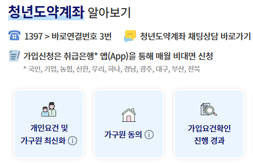 청년도약계좌 상품 안내 개인요건 및 가구원 최신화 ※ 본인 나이 및 주민등록표등본 기준의 가구원 정보에 이상이 없는 경우,별도로 최신화를 신청하실 필요는 없습니다. (바로 가구원 동의절