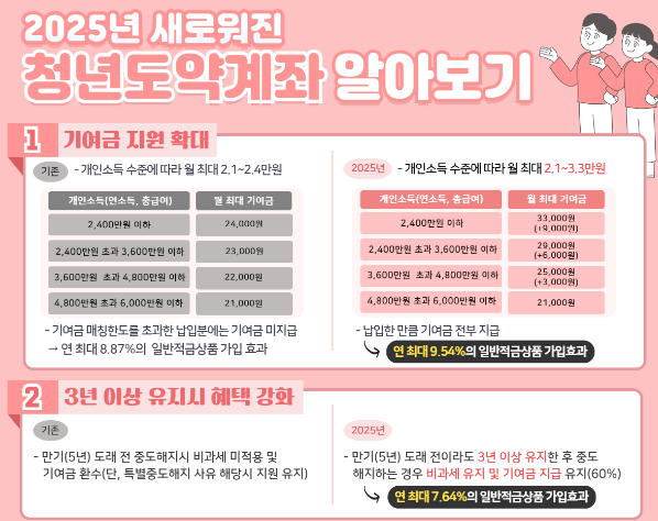 또한 만기 5년 동안 유지할 경우 정부기여금과 이자소득 비과세 혜택을 함께 받을 수 있어 장기 저축에 유리합니다.