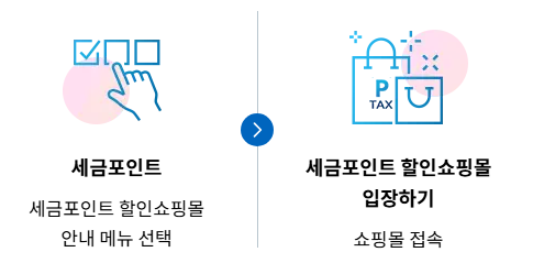홈택스 또는 손택스 내 ‘세금포인트 사용하기’ 버튼을 누르면 바로 쇼핑몰로 이동됩니다.