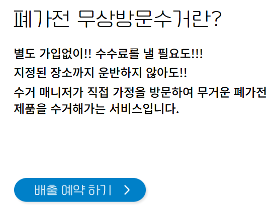 예약 절차는 ‘폐가전 무상수거 예약시스템’ 공식 페이지에서 확인이 가능합니다.