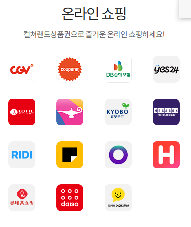 이렇게 등록된 금액은 ‘컬쳐캐시’로 전환되어 다양한 온라인 가맹점 결제에 활용됩니다.