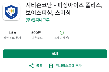 시티즌 코난 앱은 구글 플레이스토어를 통해 설치 가능하며, 안드로이드 기기에서 보이스피싱 차단 기능을 바로 활용할 수 있습니다.