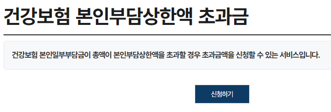 메뉴 경로는 ‘민원신청 → 개인민원 → 본인부담상한액 초과금 조회/신청’ 순서로 이동하면 됩니다.