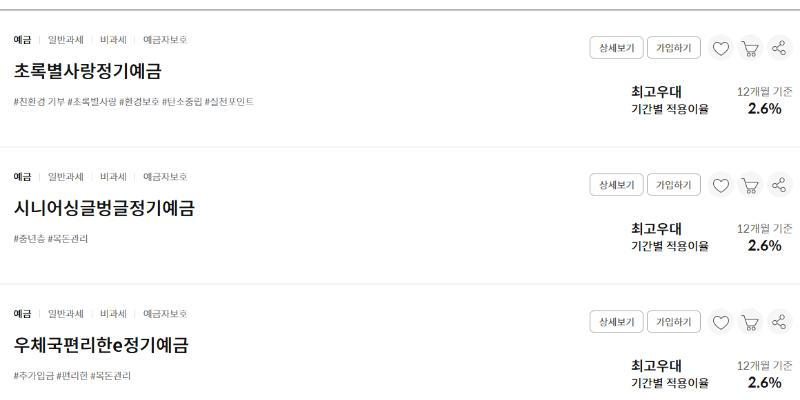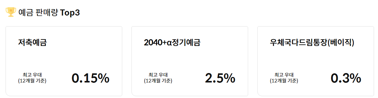 우체국 금융상품몰에서 상품별 금리 현황을 비교하실 수 있습니다.