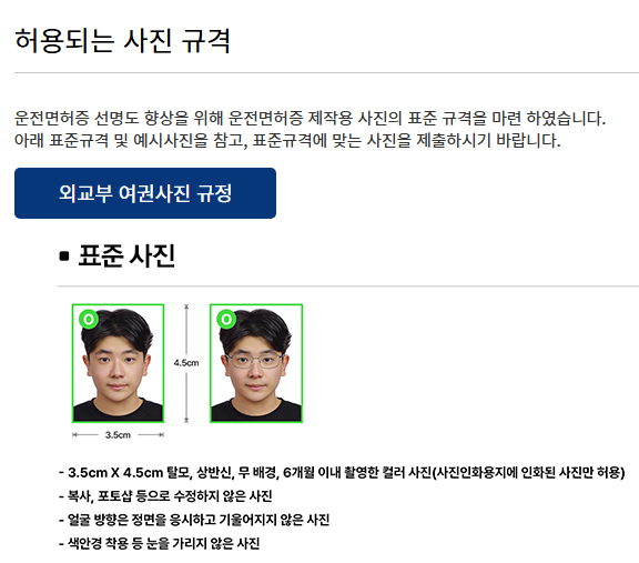 정확한 규격 예시는 도로교통공단 홈페이지의 사진 예시 페이지에서 확인하실 수 있습니다.