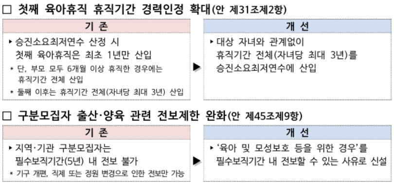 이러한 개선은 휴직 중 경력 단절 문제를 줄이고 조직 내 경력 축적을 지속할 수 있도록 설계된 내용입니다.