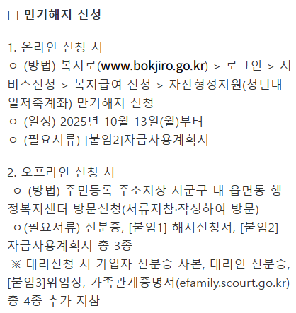 만기 해지를 신청할 때는 이 요건 충족 여부가 정부지원금 지급 판단에 직접 반영됩니다.