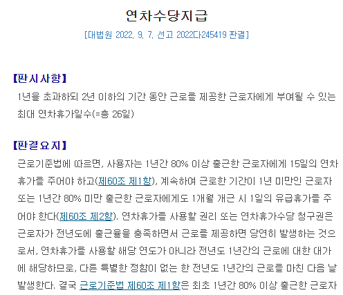 연차수당지급 [대법원 2022. 9. 7. 선고 2022다245419 판결]