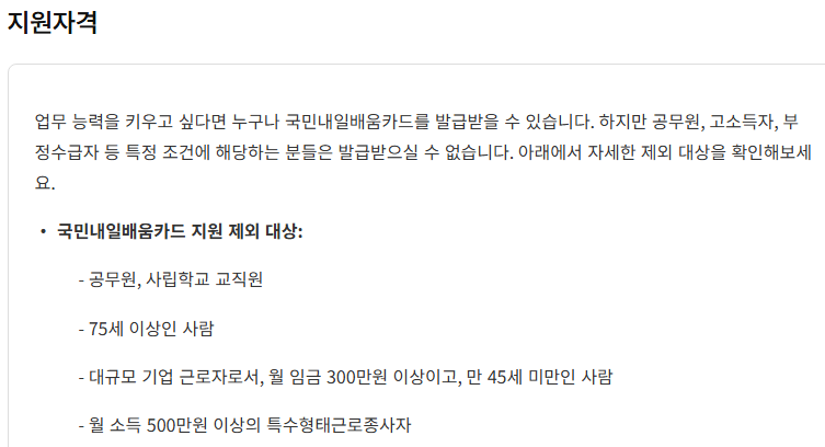 내일배움카드는 고용보장 가입 여부와 관계없이 대부분 신청 가능해 접근성이 넓습니다.