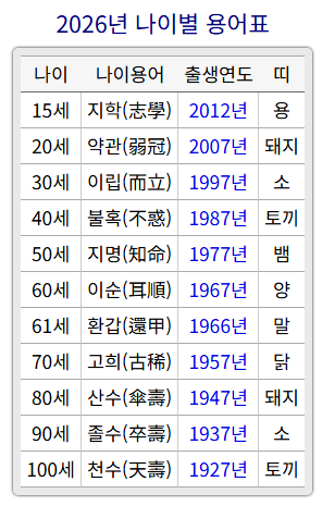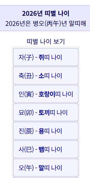 해당 연도에 대응하는 띠를 확인하면 2026년 기준 연령을 자연스럽게 도출할 수 있습니다.