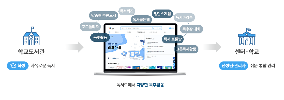 독서로는 기존에 각 시도교육청에서 독립적으로 관리하던 독서교육지원 시스템을 클라우드 기반으로 통합하고 고도화한 새로운 독서교육 통합 플랫폼입니다.