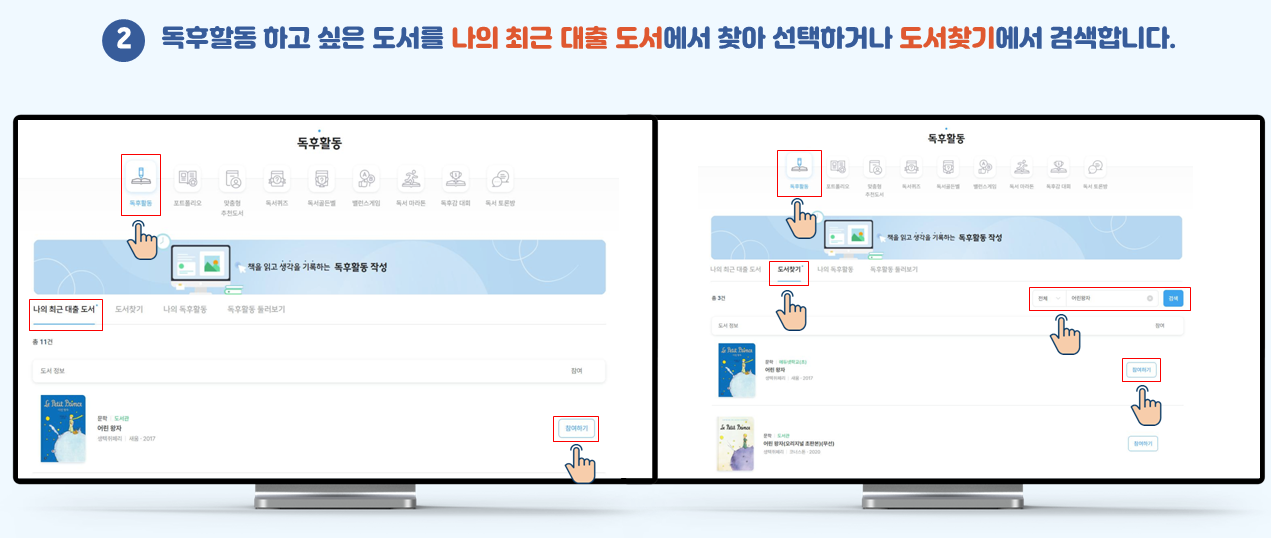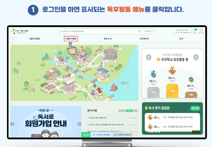 독서로 사이트를 통해서 회원가입을 진행하면, 책을 읽은 후에 펜이 아닌 디지털로 독후활동을 할 수 있습니다.