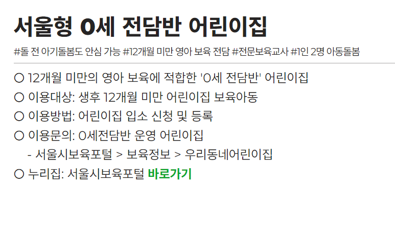 - 서울형 0세 전담반 어린이집