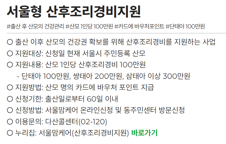 - 서울형 산후조리경비지원