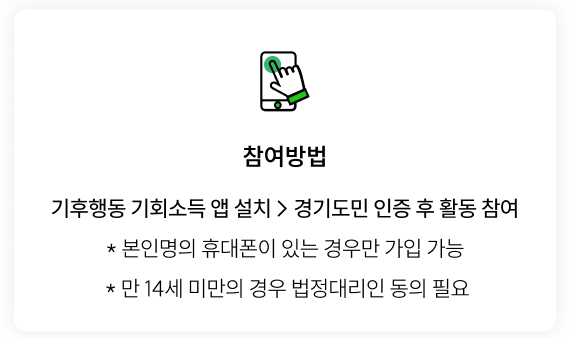 극심한 폭염이나 빈번한 태풍 등의 기후변화에 대응하기 위해 경기도에서는 기후행동 기회소득 사업을 실행하여 도민이라면 참여할 수 있습니다.