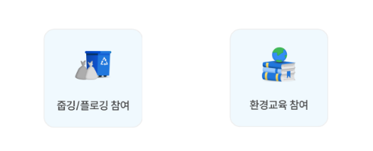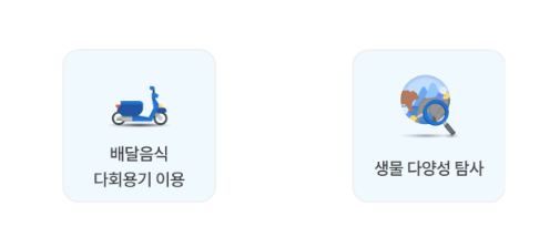 자원순환 분야에서는 배달 음식 주문 시 다회용기 이용, 다회용 컵 할인카페 찾기, 휴대폰 자원순환 참여, 줍깅/플로깅 참여 등이 포함돼요.