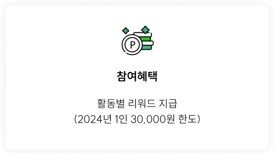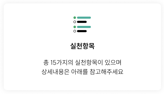 총 15가지 실천항목을 제공하고 있으며 활동에 따라서 리워드를 제공하고 있는데, 2024년 하반기에 시행되어 올해는 최대 3만원까지 리워드를 지급받을 수 있으니 홈페이지에서 직접 확인해보는 것이 좋습니다.