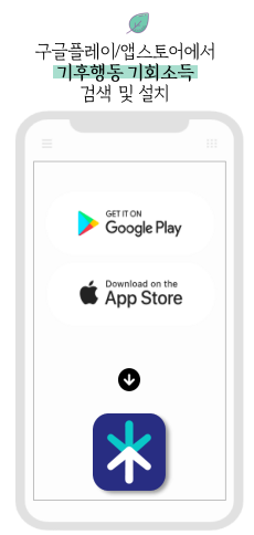 참여를 위해서는 구글스토어나 앱스토어에서 기후행동 기회소득 앱을 다운로드하고, 회원가입 후 활동을 시작하면 돼요.