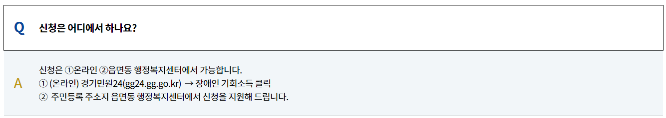 경기도 장애인 기회소득 사업은 읍면동 행정복지센터에 방문하거나 경기민원24 사이트를 통해서 온라인으로 신청할 수 있습니다.