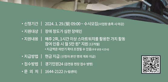 경기도에 살고 있는 장애인 도민이라면 기회소득 사업에 참여하여 올해 7월부터 월 10만원 금액을 지원받을 수 있습니다.