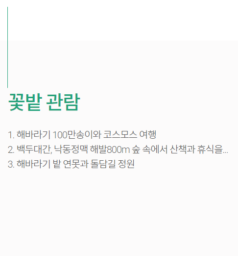 산양 먹이주기 체험, 다육식물 심기 체험, 태백지역 생산 특산물 판매장 운영 및 체험 등 각종 행사에 참여할 수 있으니 올해 열리는 태백 해바라기 축제를 즐겨보는 것도 좋을 것 같습니다.