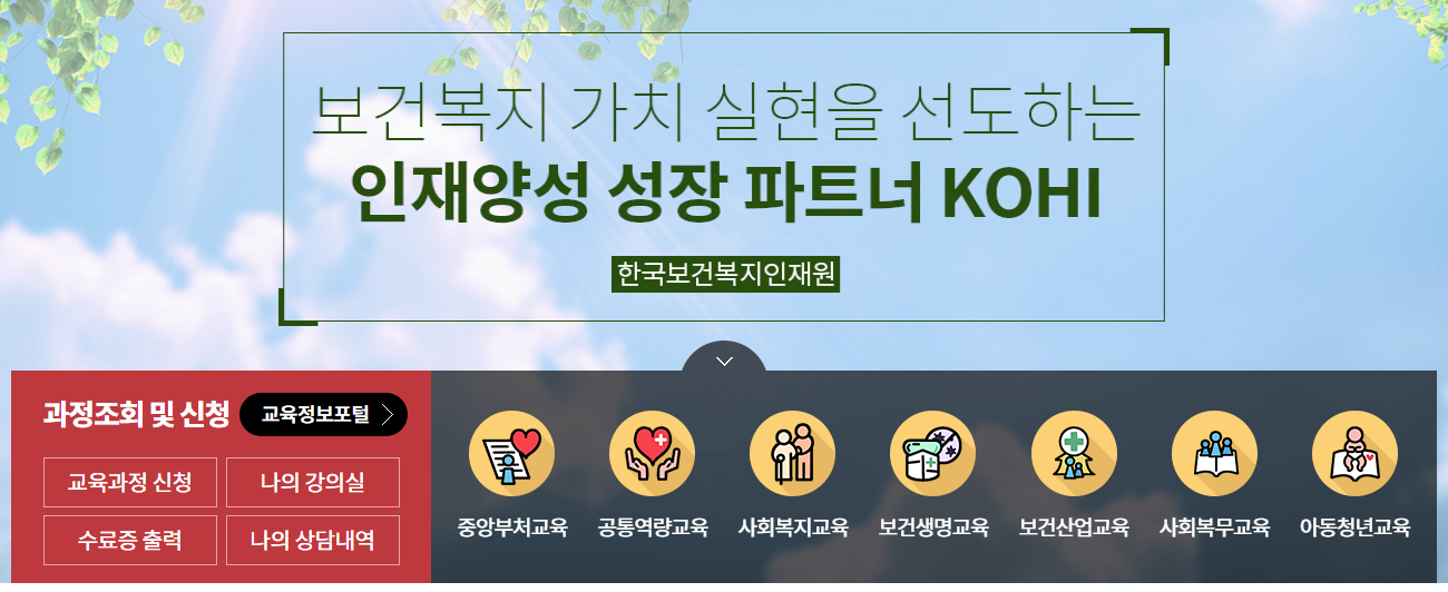 각종 보건복지와 관련된 법정의무교육 및 온라인교육은 한국보건복지 인재원 홈페이지에서 쉽게 수강할 수 있습니다.